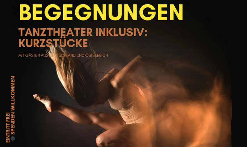 BEGEGNUNGEN IST EIN INKLUSIVER TANZTHEATERABEND, DER UNTERSCHIEDLICHSTEN MENSCHEN DAS THEMA INKLUSION KÜNSTLERISCH NÄHERBRINGEN MÖCHTE. TANZ IST HIERBEI DIE KREATIVE SPRACHE DES ABENDS, WELCHER SICH UM DEN MENSCHEN IN ALL SEINEN BESONDERHEITEN DREHT. LOSGELÖST VON KÖRPERLICHKEITEN SCHAFFT TANZ EINE VERBINDUNG ZWISCHEN ALLEN IM RAUM ANWESENDEN INDIVIDUEN. MIT BEWEGUNG UND EMOTION WERDEN BARRIEREN ÜBERWUNDEN UND DIE MÖGLICHKEIT GESCHAFFEN, IN EINEN GEMEINSAM GELEBTEN MOMENT EINZUTAUCHEN.