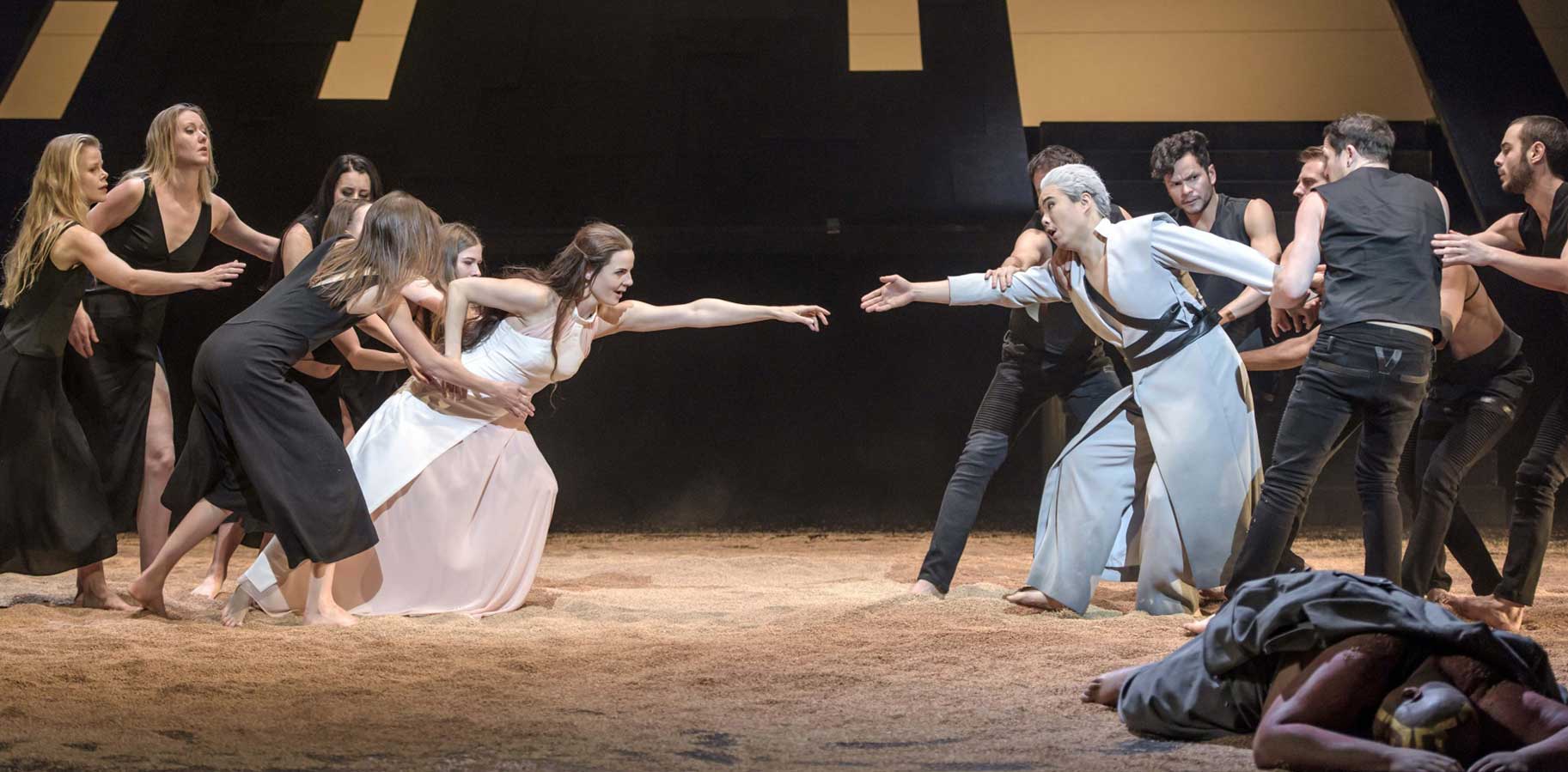Nach dem fulminanten Erfolg von Orpheus und Eurydike 2016 wird mit dieser Produktion die bereichernde Zusammenarbeit mit dem Tanztheater Erfurt fortgesetzt. Der Opernchor und fünf Solisten werden ergänzt durch Tänzerinnen und Tänzer, die die Welt des griechischen Mythos’ aufleben lassen und diesem intensiven Familiendrama eine spezielle Farbe geben.